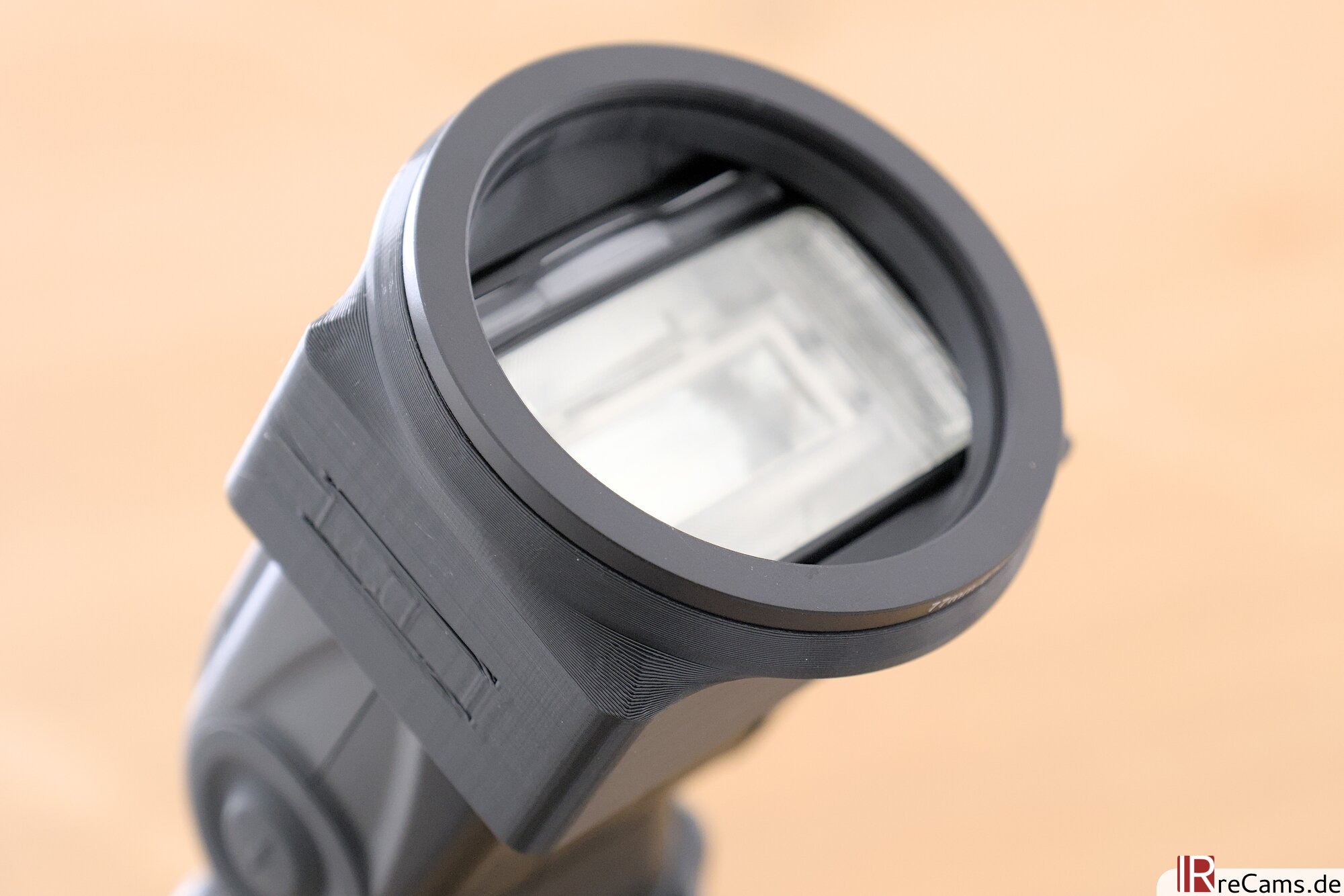 El cuerpo base del adaptador se fabrica mediante un proceso de impresión 3D con plástico reciclado 100%. El plástico es dimensionalmente estable, impermeable y estable a los rayos UV incluso a altas temperaturas exteriores. La conexión al flash se realiza con 8 potentes imanes de neodimio que proporcionan una sujeción fuerte y segura y que, además, se pueden sustituir rápidamente. Los filtros atornillables se enroscan en una toma de aluminio de 67 mm.